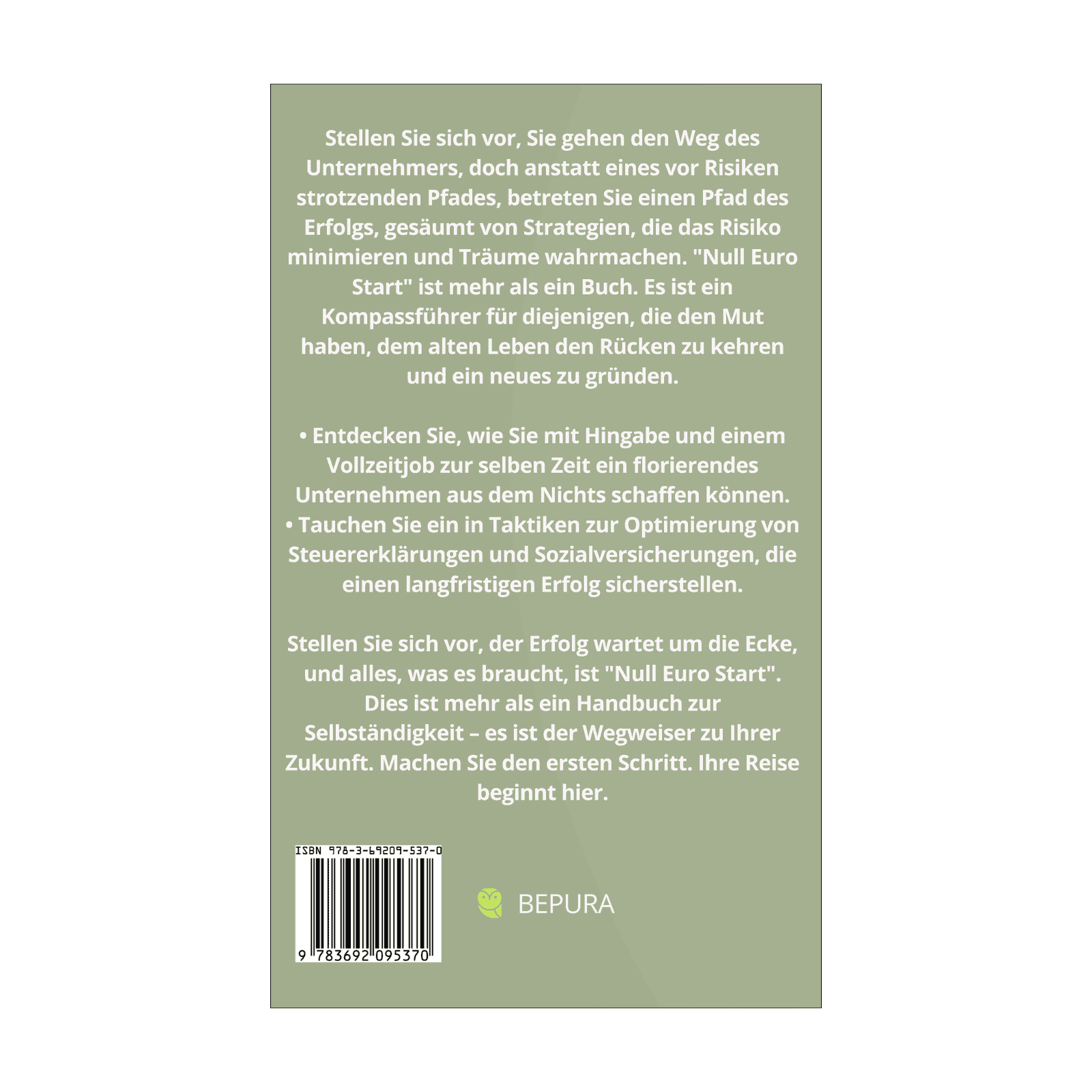 Dieses Buch bietet dir den Start in die Selbständigkeit ohne das Risiko einer hohen finanziellen Belastung und dabei den Ausbau deines eigenen Unternehmens neben deinem Hauptjob. Der Null Euro Start ist tatsächlich möglich.